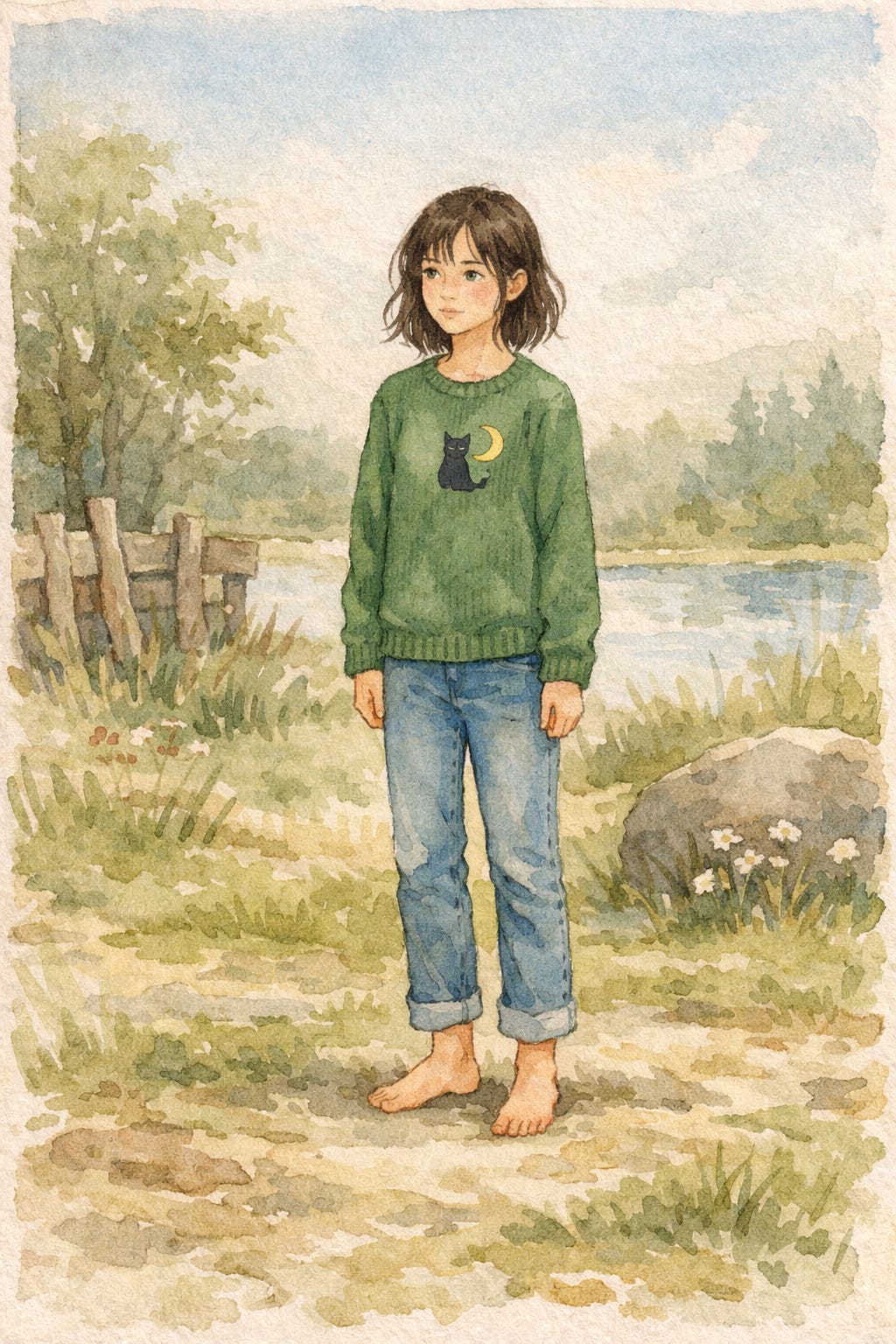 The light filtered through layered leaves and settled in soft bands of green and honey-gold. The air carried moss-sweet damp and the faint brightness of wildflowers tucked somewhere just beyond sight. The ground gave gently beneath her bare feet, springing back as if pleased she had stepped there at all.